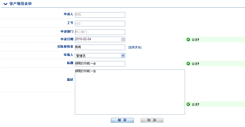 Navigation: 资产 > 领用借用管理 > 资产领用流程 >