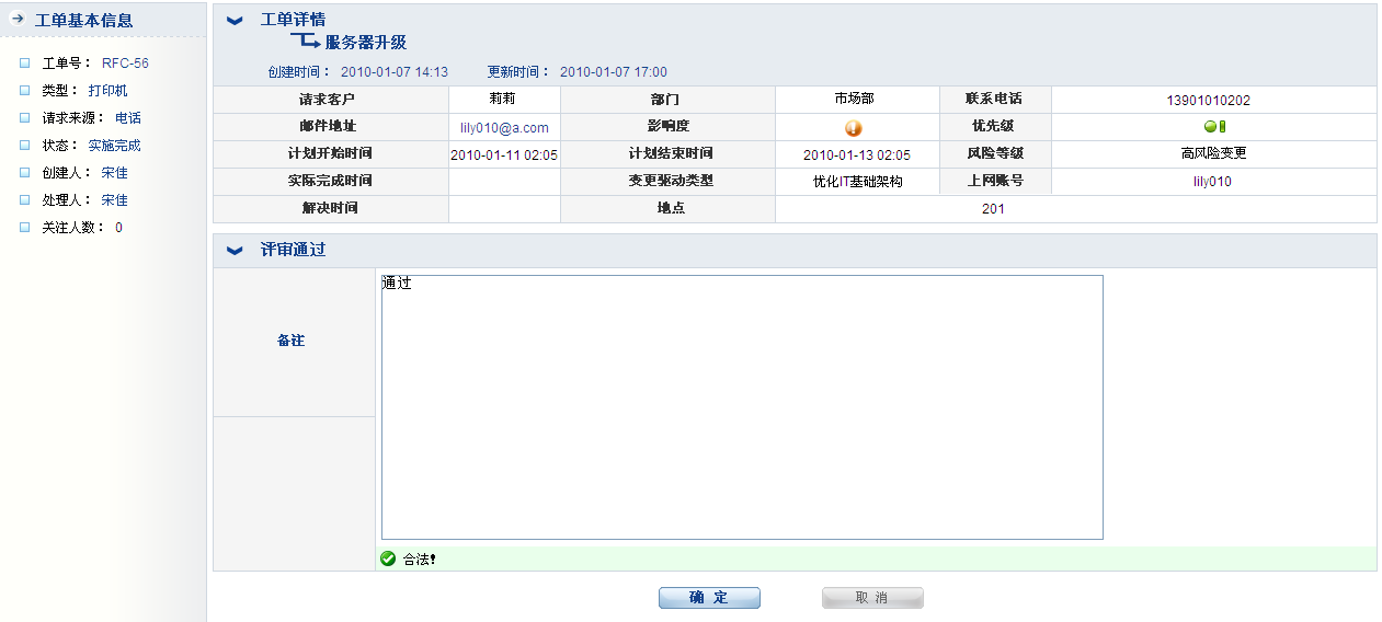 5. 输入备注信息,即可评审通过该工单。工单将直接被关闭,状态更新为[已关闭]。