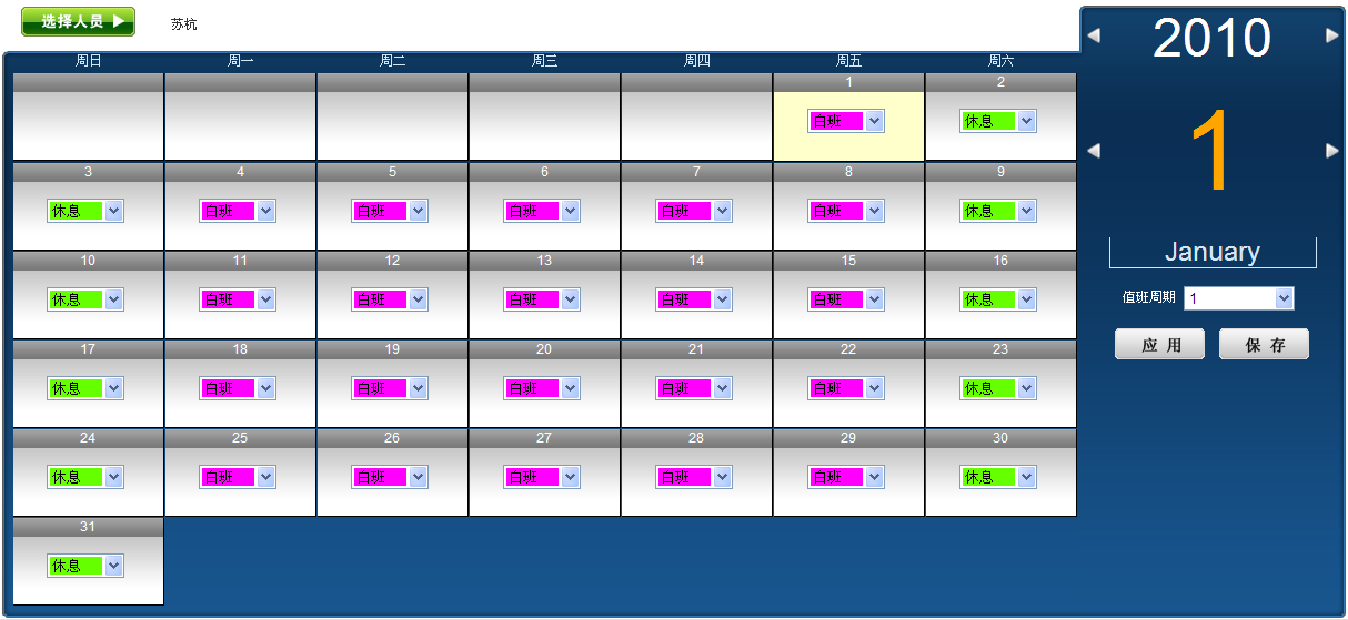 在主界面中单击[值班管理]→[排班],进入[排班]界面,如下图所示。