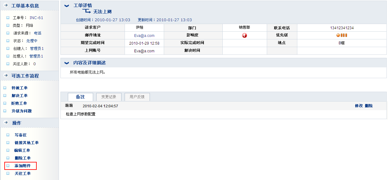 1. 单击工单号上的超链接,进入工单详情界面。