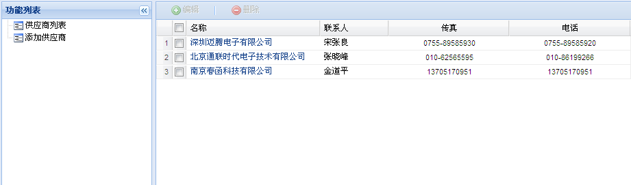 1. 进入[供应商列表]界面,选中需要编辑的供应商,单击<编辑>按钮,进入[编辑供应商]界面。