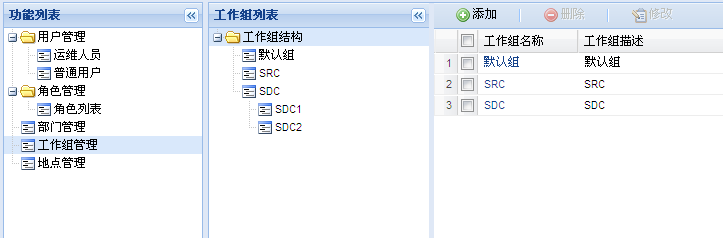 在主界面中单击系统设置[系统设置]→[用户管理]→[工作组管理],进入[工作组管理]界面,如下图所示。
