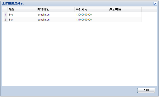 单击工作组名称上的超链接,弹出工作组成员列表窗口,显示所有属于该工作组的用户。